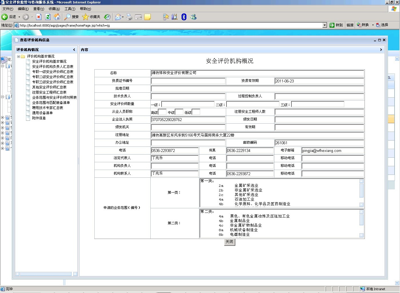 對安全評價機構資質及業務范圍進行監管,完成資質的申請、變更、補發、延期、注銷的業務辦理,向社會公布評價機構名單,省外評價機構的備案,防止監管評價機構在其許可的業務范圍外進行安全評價活動,建立全省安全評價機構監管數據庫。