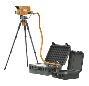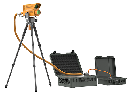 光學破拆裝置內(nèi)置高能光纖激光器,能夠從地面發(fā)射激光對鋼板、鋁板、鋼筋、彩鋼瓦、樹木、塑料、馬蜂窩等進行遠距離切割清除。