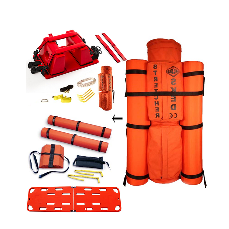 可漂浮救生擔(dān)架材質(zhì):柔韌塑料制成,強(qiáng)度高、耐磨性??捎糜谒婢仍蜕降鼐仍?;可加設(shè)固定扁帶,可防止拖拽造成損壞。高強(qiáng)度把手8個(gè),工作負(fù)載:400kg,內(nèi)置平板式可拆卸浮力輔助系統(tǒng)和脊柱板固定系統(tǒng),方便固定傷員,配備:梅隴鎖1個(gè)(主軸拉力45kN、橫軸拉力8kN)、鋼制梨型鉤4個(gè)(主軸拉力36kN橫軸8kN)、垂直豎井提升繩1套、浮力輔助部件和脊柱板一套。擔(dān)架浮力:1.6kN。