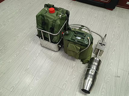 該機重量輕、出風口風速高、出風口風量大、有效滅火距離遠、操作簡單、攜帶方便,是一種有效的小型滅火工具。