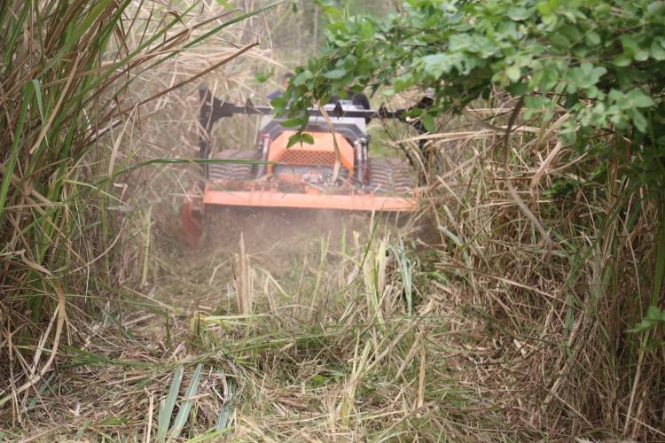 森林隔離帶開辟車是由隔離帶開辟機模塊、大型鈍刀式切削模塊、重型林木抓斗、鏟斗、快換機構、履帶式行走機構、臂架舉升裝置、駕駛室、電氣液壓系統和無線遙控器組成。設備應采用雙三角形履帶式行走機構,具備建造防火隔離帶的能力,可粉碎樹 木、灌木、草等各種可燃性植物,能在茂密的樹林、灌木林、草原中迅速開辟防火隔離帶。可粉碎的樹木直徑≥ 250mm,連續粉碎時可粉碎的樹木直徑≥80mm,可粉碎的樹木、灌木和草的高度沒有限制。在山地林區開辟防火隔離帶、維護防火通道、開辟臨時救援通道、建立安全島、輔助清理火場、開設生土隔離帶等應急救援任務。