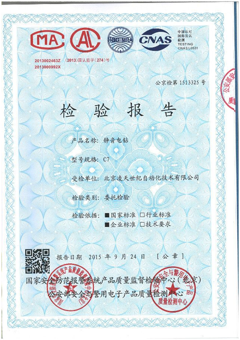 7. 通過公安部安全與警用電子產(chǎn)品質(zhì)量檢測中心檢測、中國兵器裝備集團兵器裝備研究所測試試驗中心、中國兵器裝備特裝產(chǎn)品質(zhì)量監(jiān)督檢測中心檢測;