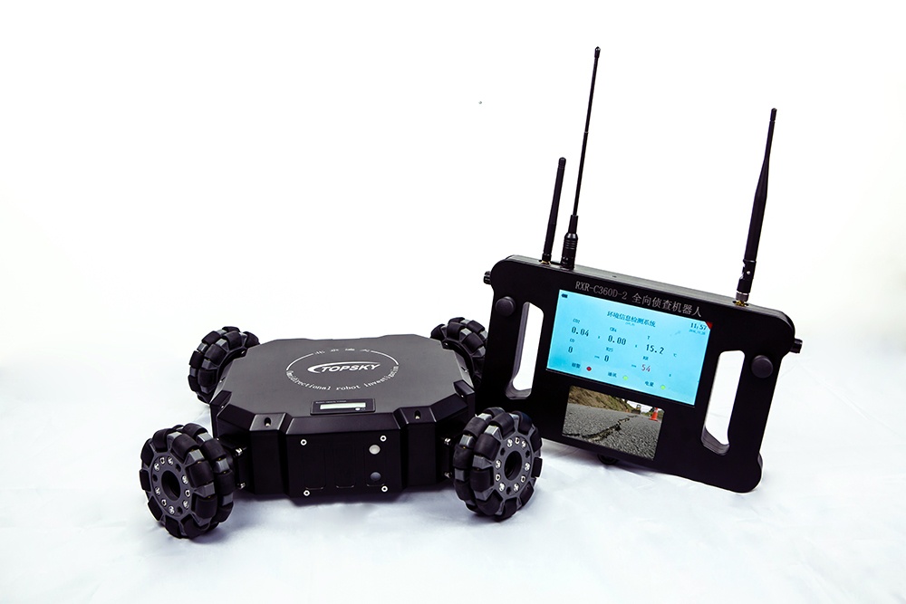 RXR-C360D-2全向移動偵察機(jī)器人,是一款體積較小,外形美觀的小型探測機(jī)器人,主要用于重大危險源監(jiān)管,通過遙控,可深入到危險場所,對重大危險源進(jìn)行有毒有害氣體采集及攝像取證。機(jī)器人驅(qū)動輪堅固靈活,具備任意方向角度的平移運動能力,使其更加快捷的到達(dá)所指定的位置,快速準(zhǔn)確的探測有毒有害氣體的濃度。