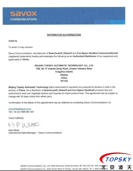 北京凌天成為美國SAVOX公司視頻\音頻生命探測儀代理商