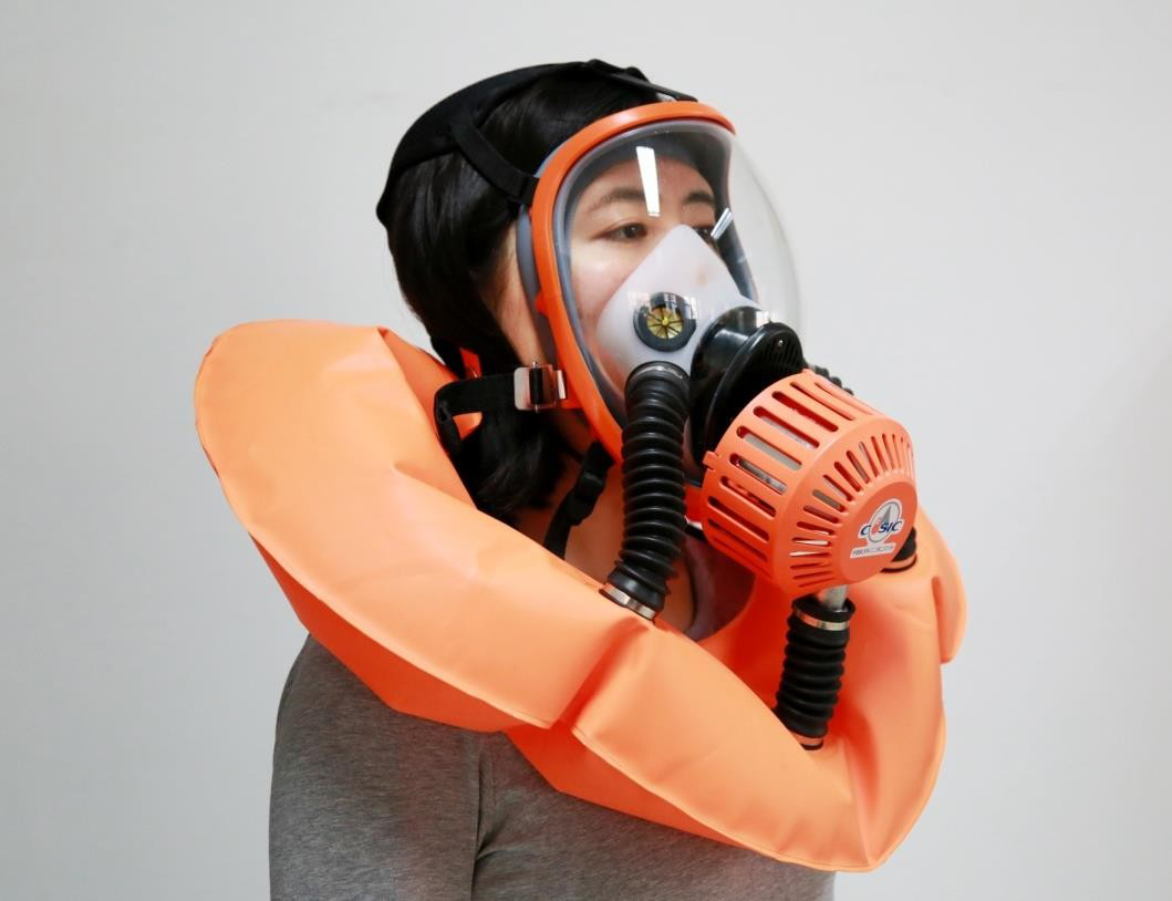 產(chǎn)品采用了航天空氣再生技術(shù)、空氣可控緩釋技術(shù)、一體化熱控技術(shù),實現(xiàn)了小型化、便攜式、內(nèi)循環(huán)空氣再生,可長時間提供安全、高效、舒適的呼吸防護(hù),核心指標(biāo)優(yōu)于國家標(biāo)準(zhǔn)及其他類產(chǎn)品約 50% 以上。該產(chǎn)品有效解決了現(xiàn)有過濾式逃生面罩“安全性能極差”、消防呼吸器“使用復(fù)雜”、“效費比低”等痛點問題,具備消防火場救援、公眾佩戴逃生自救等多重應(yīng)急救援功效。