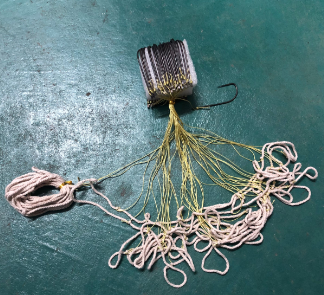 工藝流程參數:勾體粗2.2mm外徑26.8mm長度72.8mm,單枚凈重3.14g,一套滾鉤50枚,長度約5米,主線采用2.5mm回籠線,子線采用雙絞線
