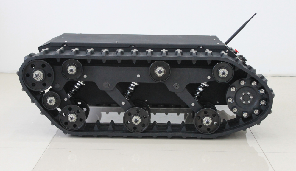 3) 履帶支撐面上有履齒不易打滑,牽引附著性能好,獨立懸掛設計,使底盤車行駛更平穩。