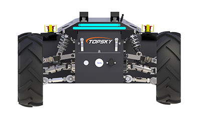 阿克曼輪式機器人底盤底盤采用鋰電池電源作為機器人動力源,使用無線遙控的方式遠距離操控機器人,并可定制復雜的操作模式,主控提供串口/標準CAN總線作為通訊接口。整機采用阿克曼轉向以及前后雙橫臂獨立懸架結構,具有IP65防塵防水能力,能夠在多種復雜環境運行。同時,整機采用模塊化設計,四獨立懸掛、左右電控箱及電池可快速拆卸維護更換。可搭載多種設備從而代替人進行高效率作業。