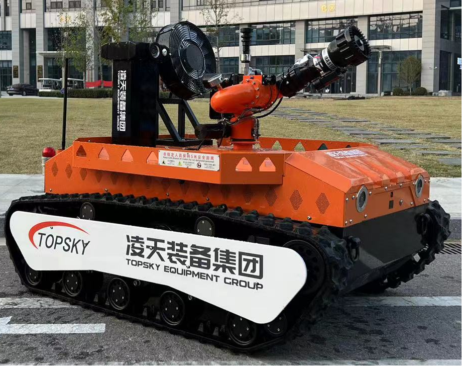 防爆消防滅火排煙偵察機器人(中型,第11代,語音控制+跟隨功能+5G控制+水炮跟蹤火焰+野外導航)