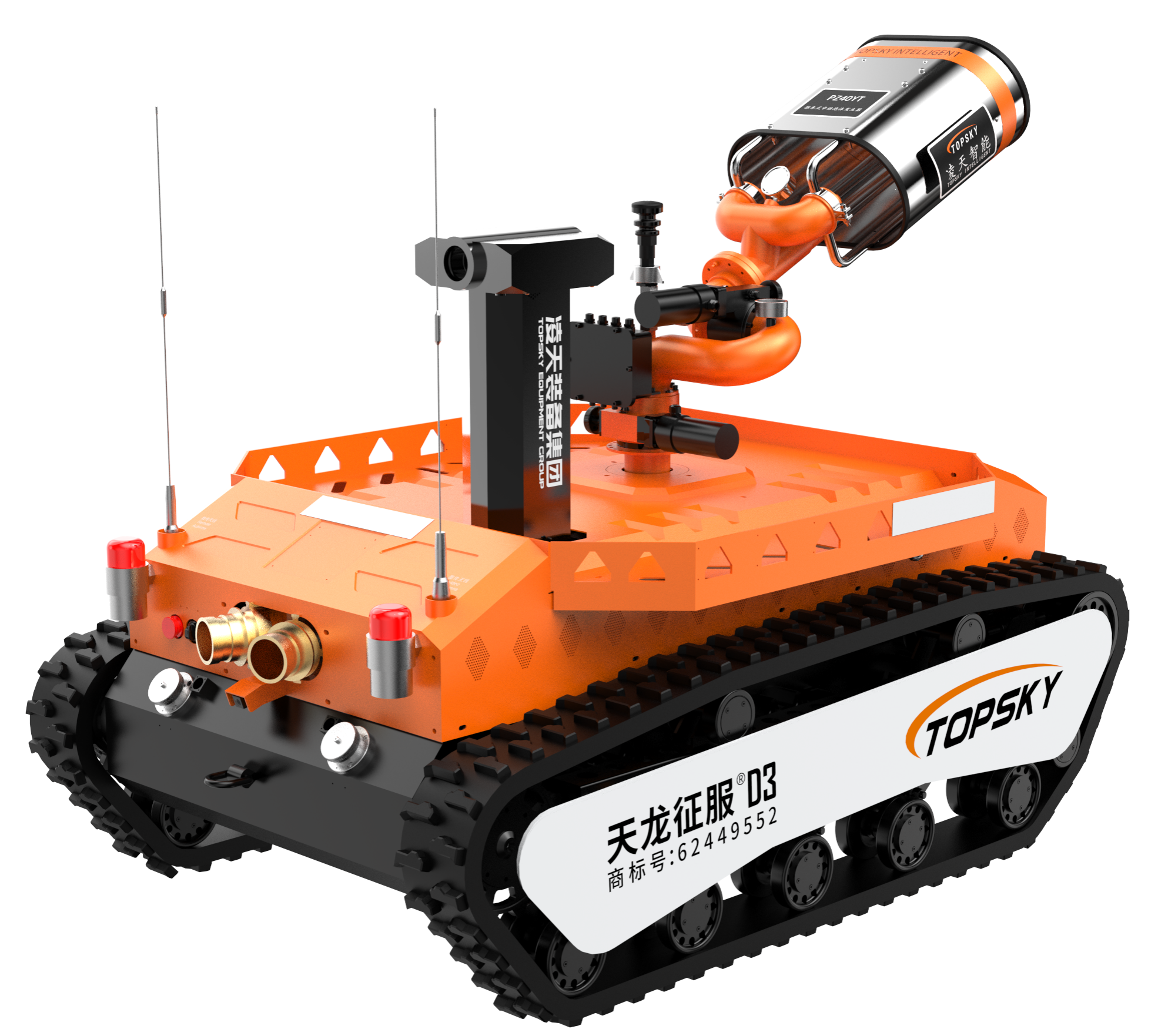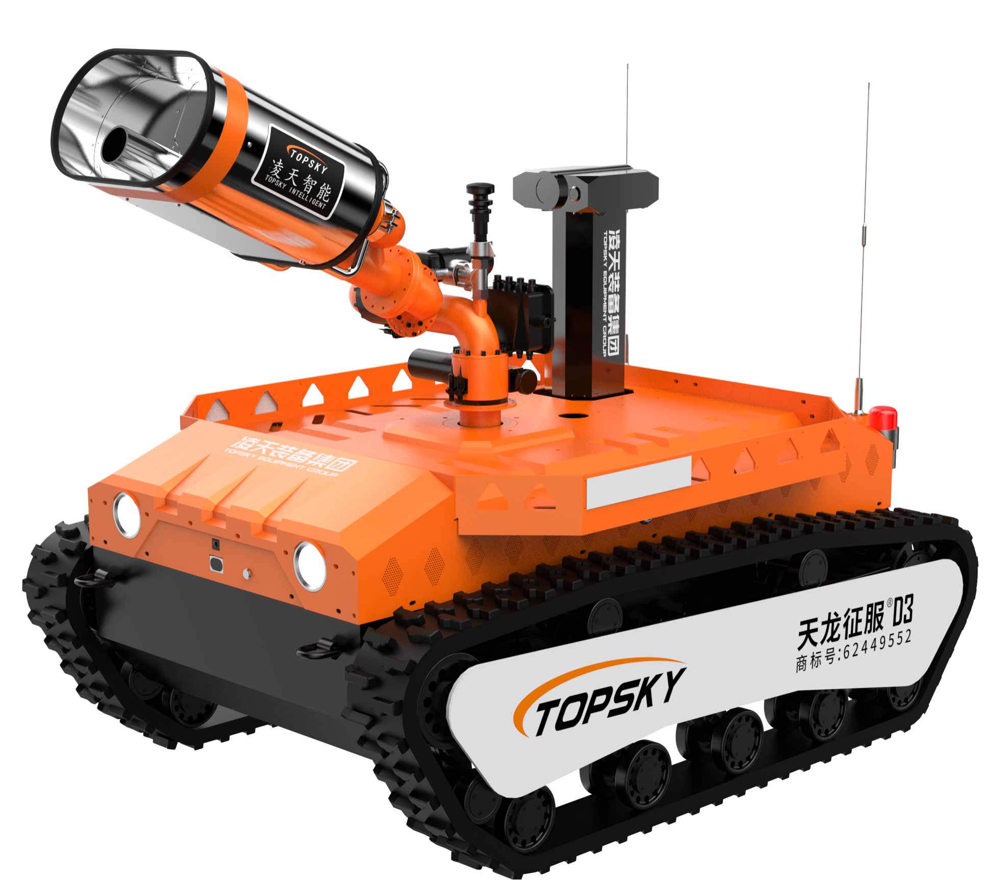 主要功能:履帶式防爆機器人底盤采用鋰電池電源作為動力源,使用無線遙控的方式遠距離操控,可搭載形式多樣,原地旋轉設計可使得運更靈活。