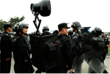 背負式聲波驅散器是包含獨立電源、攻放、揚聲器、話筒等的獨立擴音系統(tǒng),采用蓄電池直流供電,DC-DC轉換,選用YH29-2M戶外防水揚聲器,強指向、高聲壓、高清晰、耐沖擊、傳聲距離遠、可達1.5KM