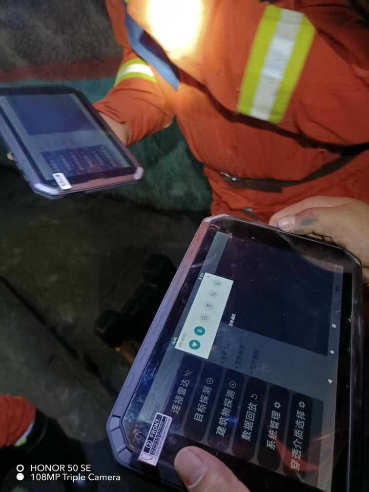 ② 側(cè)面探測:當(dāng)無法直接從廢墟頂部探測時,可以將雷達(dá)從側(cè)面用支架架起,探測被困人員的具體狀況。