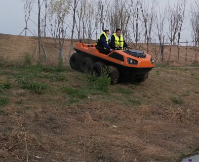 以完成可靠的野外應急救援為目的,該水陸兩棲全地形車可提供一種安全的運輸方式和可靠的運載平臺,產品可以在山地環境、濕地環境、沼澤環境、水面環境、叢林環境等多種工作環境下,實現全天候連續作業。并且可以在災害現場巡邏勘察、運送受傷人員、并有效實施援救。