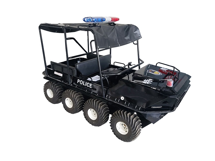 水陸兩棲全地形車在崎嶇路面為救護車提供輔助服務,當遇到救護車不能安全通過地方,兩棲全地形車可以翻越各種類型障礙物,及時以到達傷害發生的地。緊急情況下,可讓您取道直接的路線,更快速的到達現場。額外配備擔架以及防傾倒結構意味著病人或受傷人員可的得到安全和快速醫療看護。