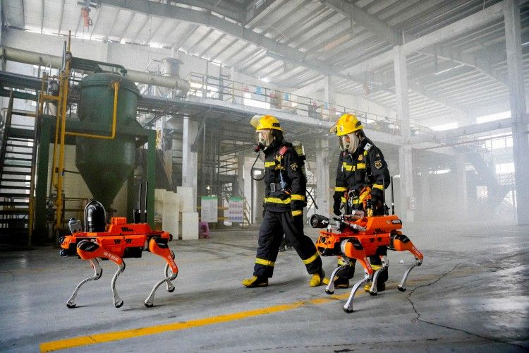 四足機器狗是一種結合仿生學與智能技術的特種裝備,專為復雜、高危的場景設計,工作溫度范圍覆蓋-20℃至55℃,具備IP67級防水防塵性能,可在濃煙、高溫、有毒氣體等極端環境中穩定運行。